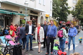 Die beiden Projektträger waren angetreten, um auf jeden Parkplatz eine eigene Welt zu kreieren, in der Kunst, Spiel und Spaß auf 60 Parkplätzen à 10 qm einen Ort finden. Blickt man auf die Kinder, so ist es ein Festtag geworden, denn sie können an der Parzelle des Quartiersmanagements Bowling spielen und gleich nebenan ein aus Kartons konstruiertes Haus bemalen, oder eben gleich die Straße selbst mit Kreide nach ihren Wünschen schmücken. Die Straße ist längst ein Ort des Verweilens. Der Böhmische Platz wird so zum Kiezplatz mit erheblicher Aufenthaltsqualität. Musik und Tanz lassen die mögliche Lebendigkeit des Terrains erahnen, was möglich wäre, wenn weniger Autoverkehr den Platz prägen würde. Auch die Bezirksbürgermeisterin Dr. Franziska Gifffey findet anerkennende Worte und der Bezirksstadtrat Jochen Biedermann drückt seine Begeisterung aus. „Geduld“ und „Interessenausgleich“ sind die Vokabeln, die dann natürlich nicht fehlen dürfen, aber eine menschenfreund-lichere Umgestaltung des Platzes scheint nicht unmöglich.