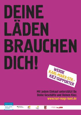 Um Gewerbetreibende im Sanierungsgebiet Karl-Marx-Straße/ Sonnenallee in der aktuellen Lage zu unterstützen, hat das Citymanagement der [Aktion! Karl-Marx-Straße] die Plattform www.deine-laeden-brauchen-dich.de online gestellt:
