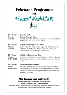 Das Februar-Programm des Frauen*NachtCafé ist da