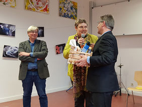 Die Stadträtin für Bildung, Karin Korte, sowie Herr Pieper von der Schulaufsicht ließen Grüße des Bezirksbürgermeisters und der Bildungssenatorin ausrichten und bedankten sich für die engagierte Arbeit des Rektors, die häufig über die eigentliche Arbeitszeit hinausging. Frau Korte hatte zudem, neben einem Präsentkorb mit Neuköllner Spezialitäten, noch eine weiteres Präsent in Form von guten Nachrichten mit in die Schule gebracht, diese stehe auch weiterhin, trotz der Inklusionsvorgabe, nicht zur Diskussion und bleibe Teil der Neuköllner Schullandschaft, darüber hinaus sagte sie den für den Unterricht zusätzlich benötigten Raum zu.