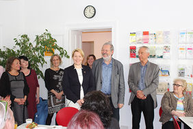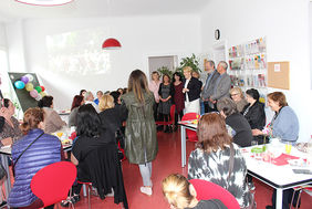 Mit einer Anekdote zum 100. Geburtstag der Namensgebung Neuköllns spannte Bezirksbürgermeisterin Dr. Franziska Giffey den Bogen zur Mitte Mai neu eröffneten Frauenberatung in der Sonnenallee. Neukölln hieß bis 1912 Rixdorf, aber als für dieses Jubiläum im Bezirksverordnetensaal im Rathaus die Stadtverordnetensitzung vom 18. Januar 1912 nachspielt werden sollte, gab es keine Rollen für Frauen, denn in dieser Zeit hatten die Frauen weder das aktive noch passive Wahlrecht. Als erste weibliche Bürgermeisterin Berlins sieht sie, dass die Förderung von Frauen nach wir vor nötig ist, denn jungen Frauen stehen immer noch nicht die Türen in Politik und Wirtschaft offen, deshalb gilt es, „Frauen stark zu machen!“, so der Appell von Franziska Giffey. Die AWO Südost tut dies, indem sie eine Beratungsstelle für Frauen betreibt. Diese ist nun in den Kiez gezogen und wurde am 16.05.2017 feierlich eröffnet. Zahlreiche Gäste kamen der Einladung nach. Neben Dr. Franziska Giffey gratulierte auch Staatssekretärin Barbara König zur Neueröffnung der Beratungsstelle. Diese bietet eine allgemeine Sozialberatung in Einzelgesprächen an, aber auch gemeinsame Aktivitäten wie Kochen sind in den großzügigen Räumen vorgesehen. Die Themenpalette ist breit angelegt: Gesundheit, Wohnen, Arbeit, Rente, Kindererziehung, Schule, Bildung, Ehe und Familie, Aufenthalt und auch Rückkehr. Hervorgegangen ist die Beratungsstelle als Anlaufpunkt für Frauen aus dem ehemaligen Jugoslawien. Mittlerweile bekommen Arbeitsmigrantinnen und Geflüchtete mit den verschiedensten Hintergründen Rat und Unterstützung in sozialen, rechtlichen, finanziellen Problemsituationen. Das Team besteht aus drei Beraterinnen und Honorarmitarbeiterinnen, die teilweise Muttersprach-lerinnen der Ratsuchenden und Besucherinnen sind. Wichtig ist auch hier der Netzwerkgedanke, d.h. die Zusammenarbeit mit Behörden, Institutionen, Gremien und Fachgruppen wird gepflegt. Die gut 600 Klientinnen im Jahr werden entweder vor Ort beraten oder bei speziellen Anliegen an kooperierende Beratungsstellen weiter verwiesen.