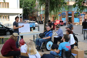 Der Kiezspaziergang zum Thema Barrierefreiheit, welcher im Rahmen des Soziale Stadt-Projektes "Stadtteilaktivierung und Stadtteilversammlung" umgesetzt wurde, fand seinen Abschluss, indem die Ergebnisse von der AG Urban auf dem Freundschaftsplatz präsentiert wurden. Dazu gab es Snacks, Getränke und Sonnenschein.