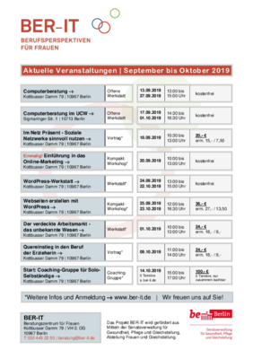 Für Anmeldungen, nähere Informationen zu den Veranstaltungen und dem Projekt besuchen Sie bitte die Internetpräsenz von BER-IT: www.ber-it.de.