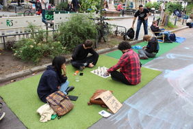 Mit Unterstützung der AG:Urban und dem Projekt "Vorfahrt für Kinder im Richardkiez" konnte ein Umfeld für das alternative Kiezfest geschaffen werden, dass viele Familien mit Kindern lockte. Während die einen ein Schachturnier an einer Parzelle anstelle eines Parkplatzes organisierten, nutzten die anderen einen „Parkplatz“ zum Chillen. Die Aktivist*innen von KARMA boten Tee aus eigens geernteten Kräutern an. Aber was war so schön, dass es das Seufzen und den leicht melancholischen Unterton erklärt? „Endlich mal nicht so ein Lärm“ meint eine junge Frau, die es sich mit ihren Freundinnen bequem gemacht hat. „Ich habe heute keine Angst, dass mein Sohn hier auf der Straße spielt, sonst muss ich schon beim Überqueren der Straße höllisch aufpassen“, ergänzt eine weitere Anwohner*in.