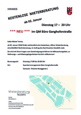 Die Mieterberatung Neukölln wird im Auftrag des Bezirksamts Neukölln durchgeführt vom Träger Mieterberatung Prenzlauer Berg e.V.