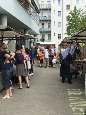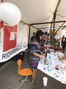 So wollten Sie wissen, wie genau sich Herr Hikel als Bürgermeister für den Bezirk einsetzt. Wichtigste Aufgabe sei für ihn, so Hikel, dass der Bezirk für alle gestaltet und vorangebracht werden kann. Unter anderem geschehe das durch Förderprogramme wie die „Soziale Stadt“, die Projekte und Aktionen wie das heutige Fest ermöglichen. Stadtrat Biedermann ergänzte hierzu, dass der Draht zu den Anwohner*innen für ihre Arbeit die Grundlage sei – so solle man unbedingt die Möglichkeit nutzen, über das Quartiersmanagement Ideen und Wünsche für den Kiez einzubringen.