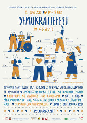 Das jährlich stattfindende Kiezfest auf dem Droryplatz steht diesmal unter dem Motto „Demokratie stärken“. Auf dem Schulhof der Löwenzahn-Grundschule, der gleichzeitig öffentlicher Spielplatz ist, gibt es wie immer Aktionsstände verschiedener Einrichtungen und Projekte aus dem Kiez. An diesen findet auch die Kinderrallye statt, die dazu einlädt Aufgaben zu bewältigen und Quizfragen zum Thema Demokratie zu beantworten. Es gibt ein buntes Bühnenprogramm und das Finalspiel des Demokratie-Fußballturniers. Auch gibt es die Möglichkeit für die Kinder, die Vertreter*innen der Politik und Initiativen auf der roten „Beteiligungsbank“ zu interviewen. Als ein Highlight werden Kinder vom „Roten Haus“ (Kinderpavillon) ein von ihnen erschaffenes „DemokratieR“ präsentieren.